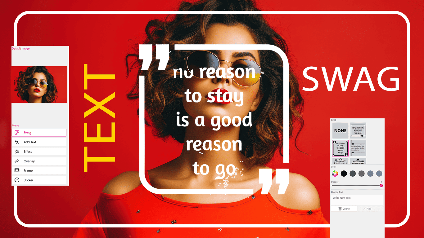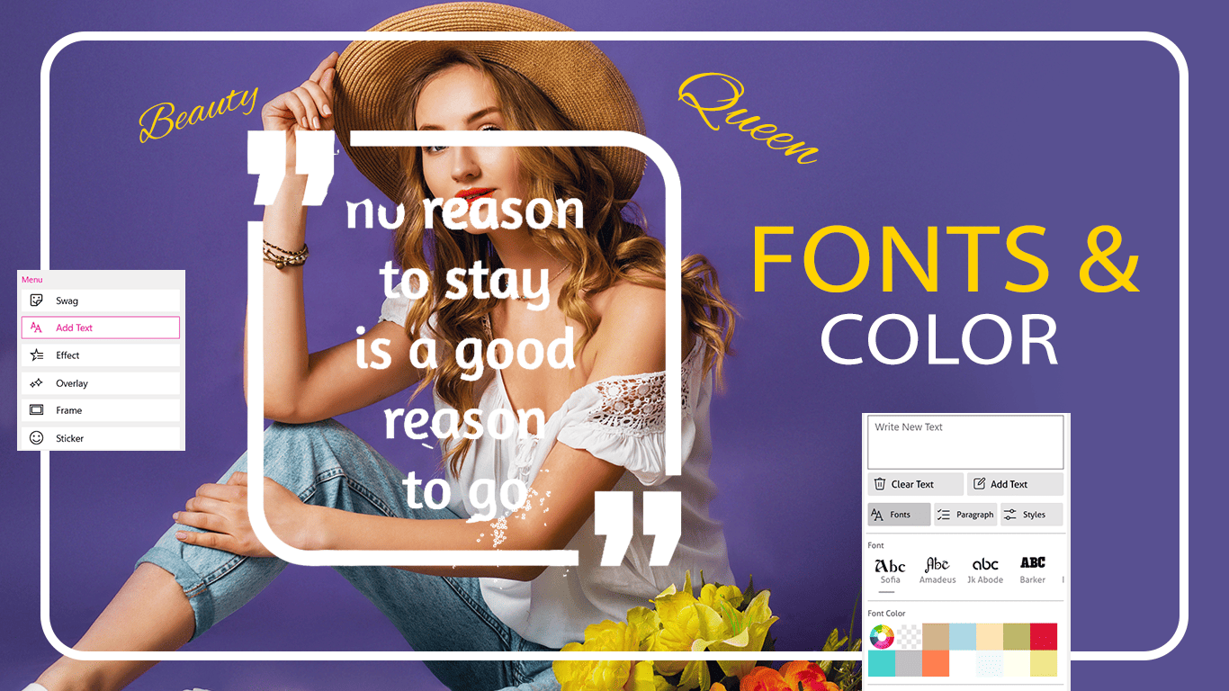 - Use Text to add captions, quotes, or titles. You can change font, color, and style.
