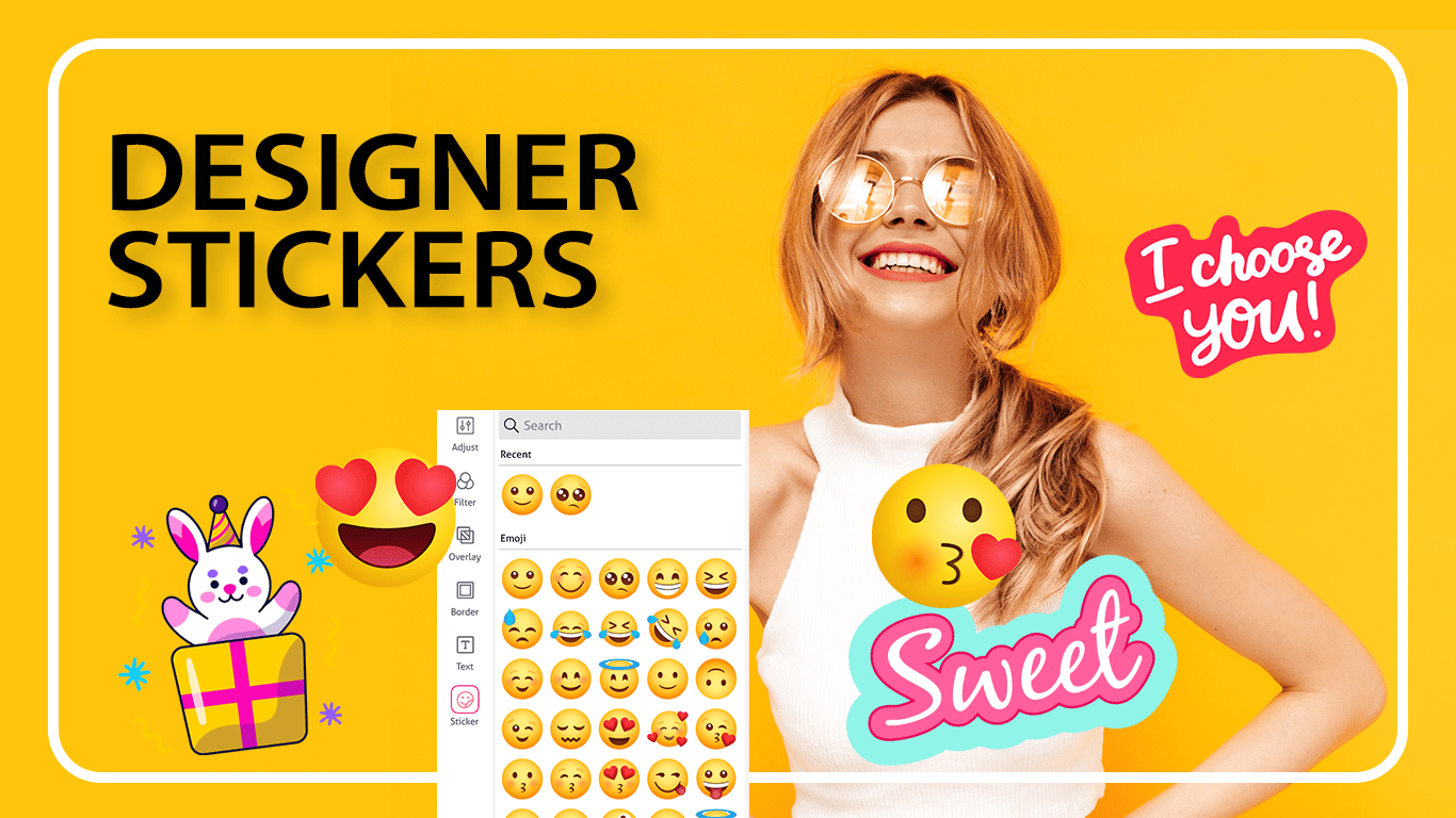 - Add Stickers to decorate your photo with fun graphics and icons.